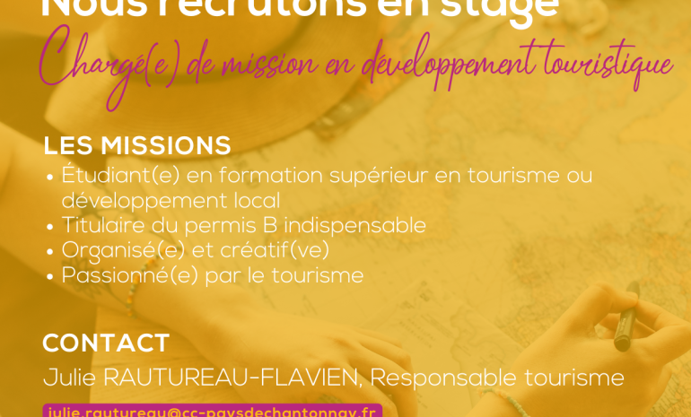 Le service tourisme du Pays de Chantonnay recrute un(e) stagiaire chargé(e) de mission en développement touristique !