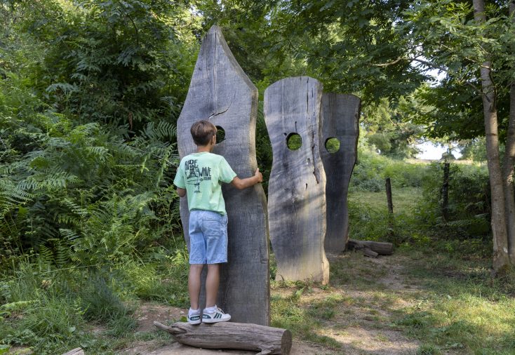 Imaginez ! Vous avancez sur le sentier, des mobiles composés d’ardoises sonnent au sommet d’un arbre, plus loin une structure en bois joue dans le vent une harmonie de sons étonnants. Laissez-vous surprendre par des créations artistiques sonores, des expériences sensorielles, des pierres gravées… qui renforcent le caractère mystérieux du lieu.
